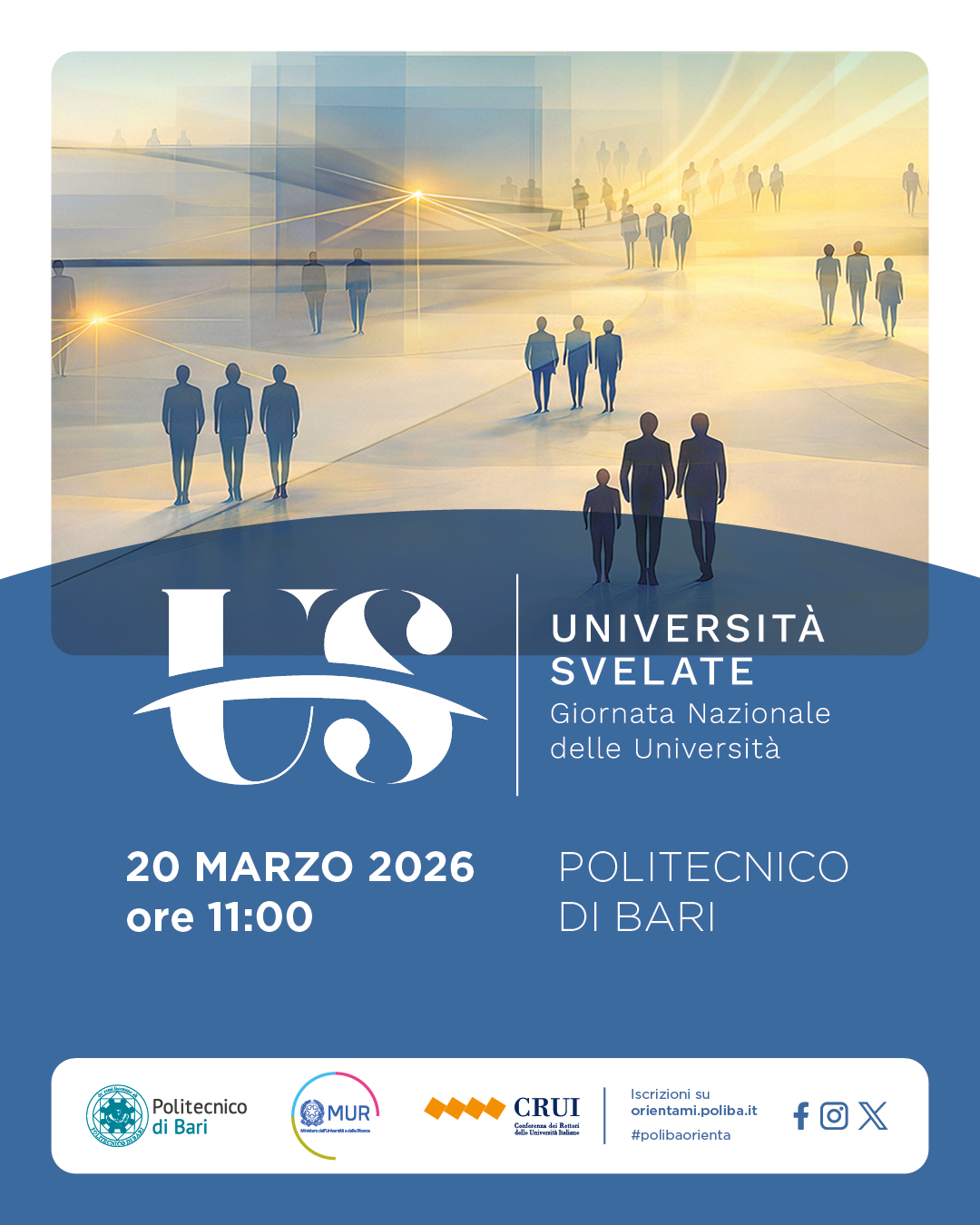 Anche quest’anno, il Politecnico di Bari apre le sue porte alle studentesse e agli studenti delle scuole superiori alle prese con la scelta del percorso universitario da intraprendere. In questo modo l’Università intende presentare le proprie strutture, i corsi di laurea, l’offerta formativa, i servizi accessori e le attività extracurricolari, organizzando una serie di eventi in presenza ed online.